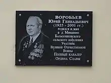Юрий Геннадиевич Воробьёв (1925—2001) — наводчик станкового пулемета 1232-го стрелкового полка (370-я стрелковая дивизия, 69-я армия, 1-й Белорусский фронт), сержант.