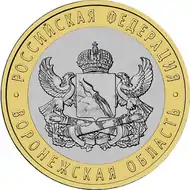- В 2011 году Центральным банком Российской Федерации была выпущена монета (10 рублей, латунь/мельхиор, анциркулейтед) из серии Российская Федерация с изображением на реверсе герба Воронежской области[62].