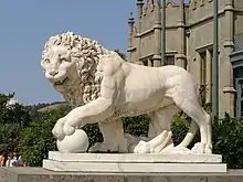 Южная парадная лестница дворца связывает верхнюю часть комплекса с нижней, приморской. Летом 1848 года на лестнице были установлены шесть мраморных фигур львов-стражей, выполненных в Италии, в мастерской скульптора Винченцо Бонанни. Они расположены попарно: первые (внизу) ещё сладко спят, два (посередине) просыпаются, а два наверху грозно поднимаются. На одном из постаментов спящего льва нанесена итальянская надпись «Leoni che seguiti in Carrara da V.S. Bonanni» (Львы, созданные в Карраре В. С. Бонанни).