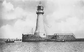 Первый стационарный маяк на молу, бывший деревянным, установлен в 1845 году на оконечности Карантинного мола по инициативе известного русского флотоводца, первооткрывателя Антарктиды адмирала Михаила Лазарева.