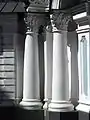 Колоны и ступени для спуска ниже уровня переулка
