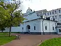 Сохранённый аутентичный фасад украшен двумя парами колонн с коринфскими капителями и завершён высоким фигурным фронтоном с насыщенным растительным орнаментом, который имитирует листья аканта и винограда, и гербом митрополита Рафаила.