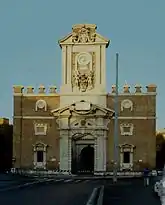 Это последний архитектурный проект Микеланджело, представленный им, по сообщению Вазари, в трёх вариантах, из которых понтифик выбрал самый дешёвый. Фасад со множеством нетипичных даже для маньеризма деталей, более напоминающий театральный занавес над въездом в «вечный город»[1], был возведён в 1561—1565 годах под присмотром зодчего Джакомо дель Дука. Завершения работ Микеланджело уже не увидел.