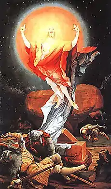 Смерть и воскресение Иисуса находятся в центре внимания Христианства. Возникают христианские богословские дебаты относительно того, какое воскресение является фактическим - духовное воскресение с духовным телом на Небеса или материальное воскресение с восстановленным человеческим телом.[3] Хотя большинство христиан верят, что воскресение Иисуса из мертвых и вознесение на Небеса произошло в материальном теле, некоторые считают, что оно было духовным. [4][5]