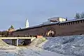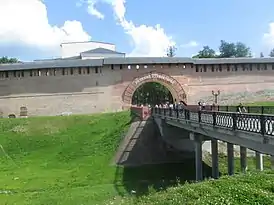Арка имеет полуциркульную форму, с коробовым сводом. С наружной стороны кремля над аркой рустованный архивольт с замковым камнем, с внутренней стороны арка выложена шириной в три кирпича. Над аркой проложен боевой ход с зубцами, под ним в толще стены имеется камера, выполненная, вероятно, для уменьшения давления на свод. Арочный проём имеет ширину 12,5 м, высоту 7,25 м, толщина стены в месте арки 4,3-4,4 м[1].