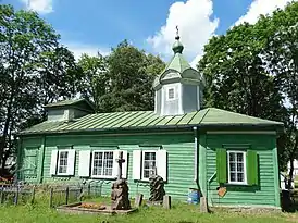 Храм представляет собой деревянное однонефное строение. Вход в церковь осуществляется через притвор. Над церковью возвышается колокольня, украшенная рядом гребней и увенчанная луковичным куполом с шестиконечным русским крестом на нём. По обе стороны храма размещены окна с зелёными ставнями. В церкви размещён однорядный иконостас.