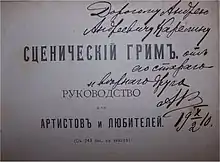 - Воскресенский А. К.[7] Руководство к сценическому гриму. — СПб. : тип. Гл. упр. уделов, 1899. — 4+156+15 с.