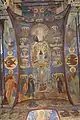 Важное место занимают, согласно посвящению храма, также сюжеты на общую тему Воскресения, расположенные на галерее с северной стороны. Обычно в церквях XVII века происходит объединение различных сюжетов о Воскресении — Иисуса, Лазаря и так далее, — в единую композицию[10].