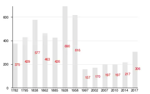 | 1782 | 1795 | 1838 | 1862 | 1885 | 1928 | 1958 |