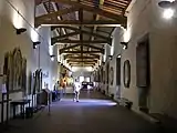 Внутри малого двора находится статуя Мадонны Аннунциаты («Возвещающей») и рельеф «Благовещение Марии» из глазурованной майолики работы Андреа делла Роббиа. Двор украшен фресками в люнетах работы Джованни ди Франческо, Поккетти, Бернардино и Гаспаро Мартелини. На втором этаже здания расположены библиотека и картинная галерея.