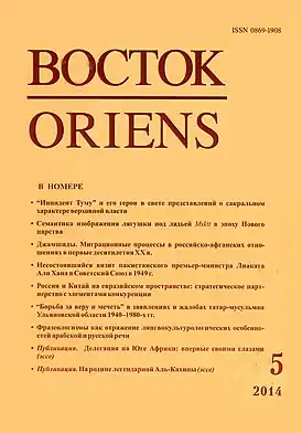 ![]() Обложка журнала «Восток», № 5 за 2014 год | |