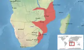 Представители вида распространены на территории Восточной и Южной Африки, встречаются в Зимбабве, Демократической Республике Конго, Замбии, Мозамбике, Ботсване, Свазиленде, Южно-Африканской Республике и Танзании. Населяют преимущественно зоны саванн, кустарниковые степи, пастбища, пахотные земли и сельские сады.