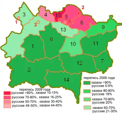 казахи — 61,08% русские — 35,56% татары — 1,16% другие — 2,24% (оценка 2020г)[2] |