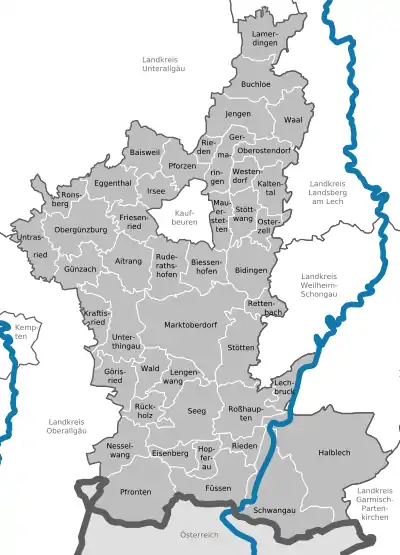 - Портал Бавария: Общины и административные сообщества района Восточный Алльгой Landkreis Ostallgäu (нем.)