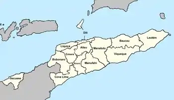 Территория Восточного Тимора разделена на 13 административных округов: