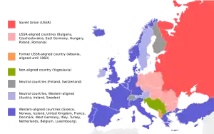 В Европе восточный блок был представлен Албанией, Болгарией, Венгрией, ГДР, Польшей, Румынией и Чехословакией, в Азии — Кампучией, Китаем (до 1961 г.)[4][5][6][7][8], Лаосом, Монголией и Северной Кореей. С 1961 года в восточный блок вошла Куба.