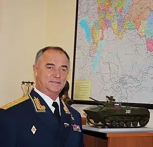 - [Имеющиеся в открытом доступе фото генерала и в общевойсковой форме, и в форме для ВДВ, соответственно разные погоны и т.д.]