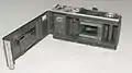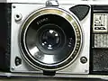 | Расположение селенового фотоэлемента и синхроконтакта | Расположение спусковой кнопки и шкалы-памятки | Верхняя крышка с органами управления | Вид снизу. Кнопка обратной перемотки, штативное гнездо и окна значений установленной светочувствительности плёнки | Курок взвода затвора расположен на оправе объектива | Задняя стенка открыта |