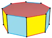 Восьмиугольная призма — шестое тело в бесконечном семействе призм, образованное квадратными сторонами и двумя правильными восьмиугольными основаниями.
