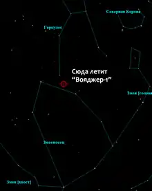 «Вояджер-1» движется по гиперболической траектории относительно центра масс Солнечной системы, поэтому он не вернётся в околосолнечное пространство под действием гравитационного притяжения[24]. Если с ним ничего не случится по пути, примерно через 40 000 лет он должен пролететь в 1,6 светового года (15 трлн км) от звезды Глизе 445 созвездия Жирафа, которая движется в сторону созвездия Змееносца. В дальнейшем, вероятно, «Вояджер-1» будет вечно странствовать по галактике Млечный Путь[25].