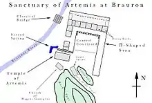 Местом поклонения всегда оставалось первоначальное святилище, вокруг храма Артемиды и могилы Ифигении, на северном скалистом склоне холма акрополя Браврона[10].