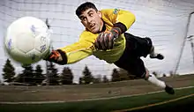 В футболе вратарь может прикасаться к мячу руками в пределах своей штрафной площади. Вратарская форма должна отличаться от формы других игроков команды, а также игроков команды соперника и судей. Вратарь носит специальные перчатки, смягчающие удары и позволяющие ему лучше держать мяч. Вратарь, покинувший штрафную площадь, считается обычным игроком.