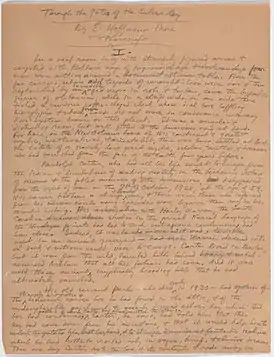 «Один из моих любимых рассказов Лавкрафта был и остается «Серебряный ключ». Рассказывая ему об удовольствии, которое я испытал, перечитывая рассказ, я предложил написать продолжение, чтобы объяснить судьбу Картера после его исчезновения».Хоффман Прайс в мемуарах 1944 года.
