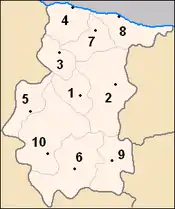 Административно область делится на 10 общин: