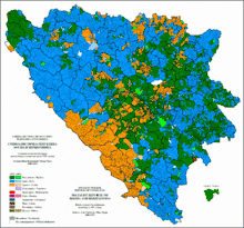 По последней довоенной переписи населения Боснии и Герцеговины (БиГ) мусульман было 1 905 829 человек (43,7 %), сербов — 1 369 258 человек (31,4 %), хорватов — 755 892 человека (17,3 %). Из 106 общин БиГ мусульмане составляли большинство в 35 общинах, в основном в центральной Боснии, а сербы — в 32 западных и восточных общинах республики. Хорваты составляли большинство на юге БиГ и в некоторых центральных общинах. Около 240 тысяч жителей БиГ самоопределились как «югославы». Большинство из них были сербами или детьми от смешанных браков. В 1991 году 27 % заключённых браков были смешанными. По площади занимаемой территории сербы опережали другие боснийские народы. Они представляли абсолютное большинство населения на 53,3 % территории БиГ[3].