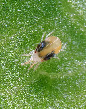 В условиях квартир наиболее безвредны препараты авермектиновой группы: актофит, фитоверм, вермитек. Данные препараты не действуют на яйца и не питающихся, ожидающих линьку, личинок и протонимф клеща. При температуре +20 °C необходимы, минимум, 3 обработки с интервалом 9—10 суток. При +30 °C 3—4 обработки с интервалом 3—4 суток[2]. - Клещи плоскотелки, или ложные паутинные клещи, или плоские клещи (Tenuipalpidae).
