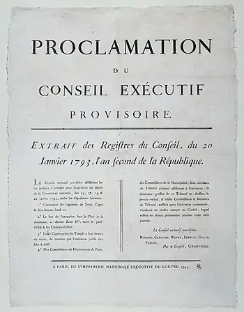 26 сентября полномочия Совета и его состав были подтверждены Ковентом. 29 сентября был наложен запрет для депутатов состоять членами Совета, в результате чего Дантона сменил Доминик Жозеф Гара, а Сервана — Жан-Николя Паш, Ролан предпочёл отказаться от депутатского мандата ради членства в Совете, где он оставался вплоть до 22 января 1793 года, когда был вынужден уйти в отставку после длительной кампании, затеянной против него политическими противниками[1]о.