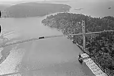 Строительство началось весной 1929 года[2]. Бетонные и железобетонные работы выполняла компания A/S Konstruktion, Oslo, доставку и монтаж металлоконструкций, несущих кабелей — компания Alfred Andersen Mek. Verksted og Støperi A/S[3]. К весне следующего года были завершены буровзрывные работы и начато сооружение монолитных анкерных опор[4]. Весной 1932 года начались работы по монтажу несущих кабелей и устройству пролётного строения[5]. Торжественное открытие моста состоялось 8 ноября 1932 года в присутствии короля Норвегии Хокона VII[4]. Главные инженеры Стунг и Станг были награждены золотыми медалями[6]. Церемония транслировалась по радио. На момент открытия это был самый длинный висячий мост в Северной Европе.