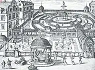 Дизайн сада Ганса Вредемана де Вриса. Несохранившаяся гравюра Питера IV ван де Борхта, 1583.