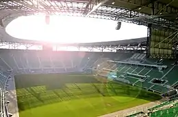 Строительство началось в апреле 2009 года и в основном было завершено в сентябре 2011 года. Официальная церемония открытия состоялась 10 сентября 2011 года: на стадионе состоялся боксёрский поединок между Виталием Кличко и Томашом Адамеком. 11 ноября 2011 года на стадионе прошёл товарищеский матч между сборными Польши и Италии. Стадион расположен рядом с шоссе А8. Несмотря на то, что стадион был открыт, некоторые строительные работы (электрификация, оборудование для телетрансляций, территории для паркингов) были завершены позднее срока сдачи стадиона[2].