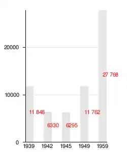 По данным переписи населения 1939 года, население вновь образованного рабочего посёлка составляло 11 848 человек[38], при этом каждый из посёлков, вошедших в новый населённый пункт, не утратил своего исторического наименования, как микрорайон или исторический район города.