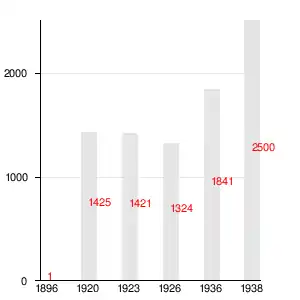 Население посёлка на 1 января 1936 года составляло 1841 человек[29].