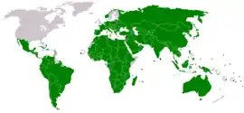 Также есть 6 ассоциированных членов (Фламандское сообщество, Пуэрто-Рико, Аруба, Гонконг, Макао, Мадейра)[11] и 2 наблюдателя (Святой Престол и Организация освобождения Палестины)[12].