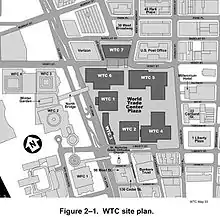 В дополнение к Башням-близнецам, план комплекса Всемирного торгового центра включал в себя четыре малоэтажных здания, которые были построены в начале 1970-х. 47-этажный 7 World Trade Center был построен в 1980-х, к северу от главного комплекса. В целом, основной комплекс Всемирного торгового центра занимал около 65 тысяч м² (16 акров).