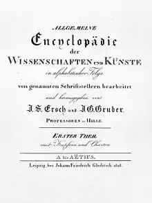 Всеобщая энциклопедия науки и искусства (нем. Allgemeine Encyclopädie der Wissenschaften und Künste), чаще называемая по именам основателей Энциклопедия Эрша и Грубера — универсальная энциклопедия на немецком языке, издававшаяся в Лейпциге в 1818—1889 гг. Основателями энциклопедии были профессора Университета Халле Иоганн Самуил Эрш (нем.) и Иоганн Готфрид Грубер (нем.), выпуск начала издательская фирма «И. Ф. Гледич». С 1831 года энциклопедию выпускал издательский дом «Ф. А. Брокгауз».