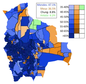 | Кандидат | Эво Моралес | Карлос Меса | Чи Хён Чунг |