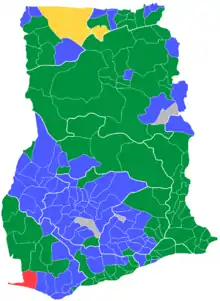 ![]() Результаты президентских выборов 2008 года по регионам. Национальный демократический конгресс Новая патриотическая партия | |||
