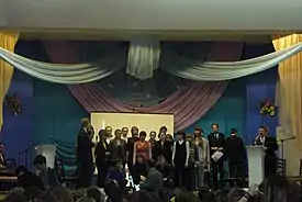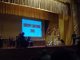 ![]() Эмблема XIII Всероссийской олимпиады школьников по русскому языку на церемонии открытия Заключительного этапа олимпиады 7 апреля 2008 года (Кисловодск) | |