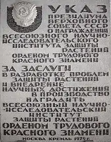 - 1979 — Всесоюзный ордена Трудового Красного Знамени научно-исследовательский институт защиты растений,