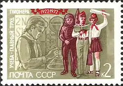 - Пионер — юный строитель коммунизма — трудится и учится для блага Родины, готовится стать её защитником.