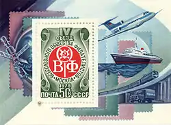 ![]() Эмблема ВОФ на почтовом блоке СССР в честь IV съезда общества (1979) | |