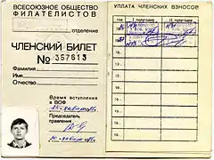 - Изображение членского билета Всесоюзного общества филателистов (1991) (Дата обращения: 2 декабря 2008)