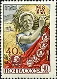 Почта СССР, 1938 г. «XX лет ВЛКСМ», первая серия марок посвященная ВЛКСМ.