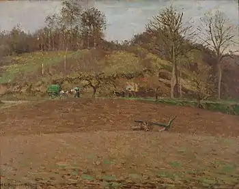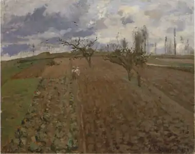 В 1872—1874 годах Писсарро много трудился в окрестностях Понтуаза под Парижем. Основным мотивом его картин были сельскохозяйственные работы на полях и огородах и вообще сцены сельской жизни.