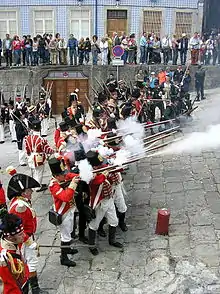 ![]() Португальские и британские полки преследуют отступающую французскую армию во втором сражении при Порту | |||