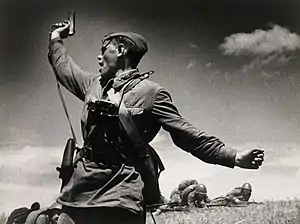 После военной тревоги 1927 года СССР активно стал готовиться к войне[35]. Возможность нападения коалиции капиталистических стран тиражировалась официальной пропагандой. Военные, для того чтобы иметь обученный мобилизационный резерв, начали активно и повсеместно обучать городское население военным специальностям, стали массовыми обучение парашютизму, авиамоделизму и так далее (см. ОСОАВИАХИМ). Почётно и престижно было сдать нормы ГТО (готов к труду и обороне), заслужить за меткую стрельбу звание и значок «Ворошиловский стрелок», и, наряду с новым титулом «орденоносец», появилось также престижное звание «значкист».
